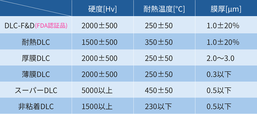 ※FDAの認証を取得したDLCは、弊社の一連の製造工程(前処理および後処理などを含む)を経てコーティングされるDLCです。